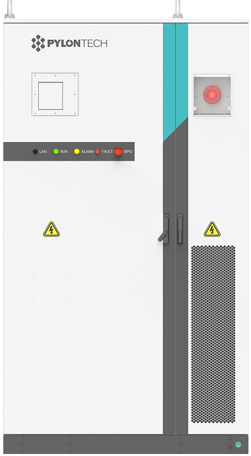 Jest to kompletny system wyposażony w zaawansowany chiller cieczowy, który gwarantuje utrzymanie optymalnej temperatury ogniw przez cały rok. Najwyższy poziom bezpieczeństwa zapewnia zintegrowany system samogaszący (z detektorami dymu i temperatury), który automatycznie wykrywa zagrożenie pożarowe i w odpowiednim momencie reaguje.